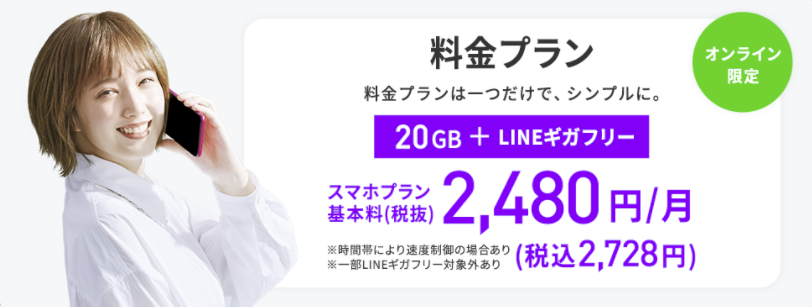 | データ通信量 | ・スマホプラン:20GB ・ミニプラン:3GB | ・1GB ・5GB ・10GB ・20GB ・無制限 | 20GB | 20GB |