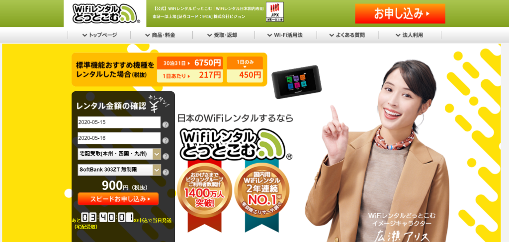 「Wi-Fiレンタルどっとこむ」は東証一部に上場する企業が運営するモバイルWi-Fiルーターのレンタルサービスで、利用者は1,400万人にもなります。