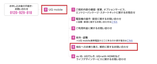解約手続きをする場合、UQモバイルセンターに連絡をする必要があります。